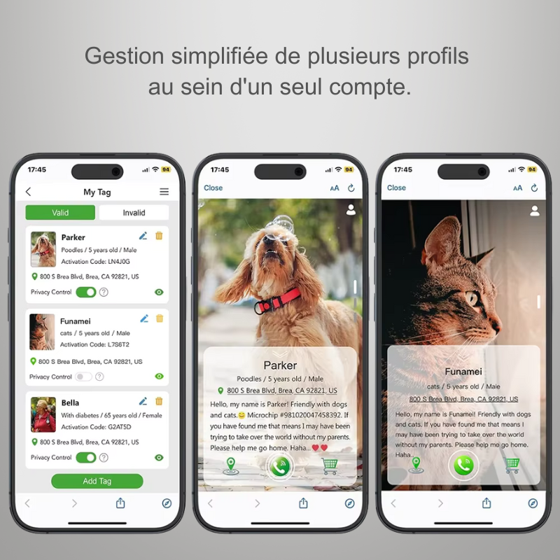- Il ne s’agit pas d’un tracker GPS, mais d’un système intelligent : lorsqu'une personne scanne le QR code du collier, elle accède instantanément à une fiche d'identité personnalisée contenant vos coordonnées, les besoins médicaux éventuels de votre chat, ou toute information utile.
