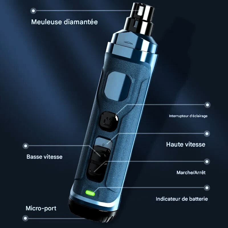 - Éclairage LED sécurisé : deux lumières LED intégrées permettent une visibilité optimale pour éviter de meuler trop profondément et garantir la sécurité de votre animal.