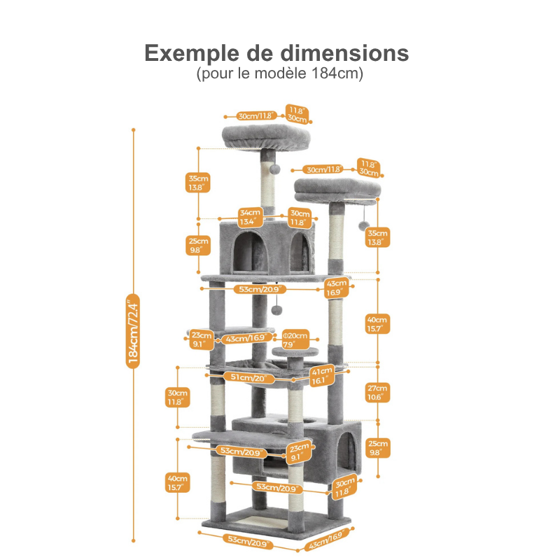 * 184 cm : modèle le plus grand avec 8 niveaux – jusqu’à 5 chats (plus dé détails dans les visuels)