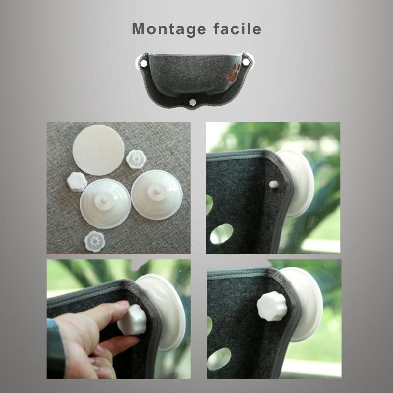 - Facile à installer, ce lit de fenêtre est aussi peu encombrant : il ne prend aucun espace au sol, ce qui en fait une solution idéale pour les petits intérieurs ou les foyers multi-chats.