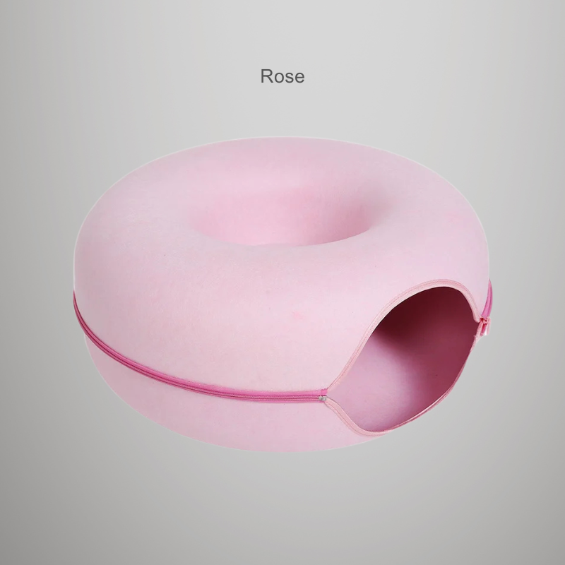 - Offrez à votre chat (ou à vos deux chats !) un espace de repos et de jeu à la fois cosy, original et astucieux avec ce lit tunnel en feutre en forme de donut.